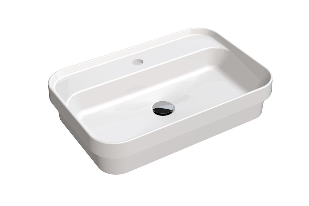Keramik Handwaschbeckenhalbeingelassen. Ohne integrierten Überlauf. Freier Ablaufstopfen wird empfohlen.