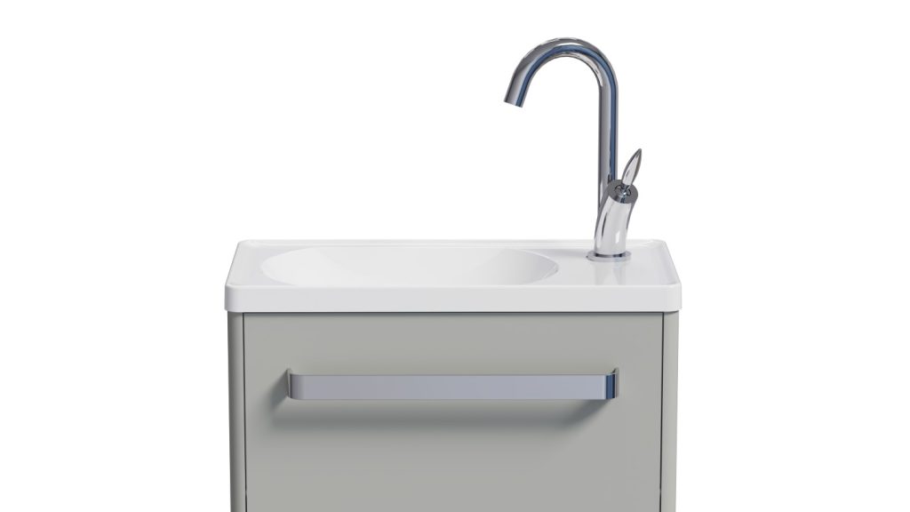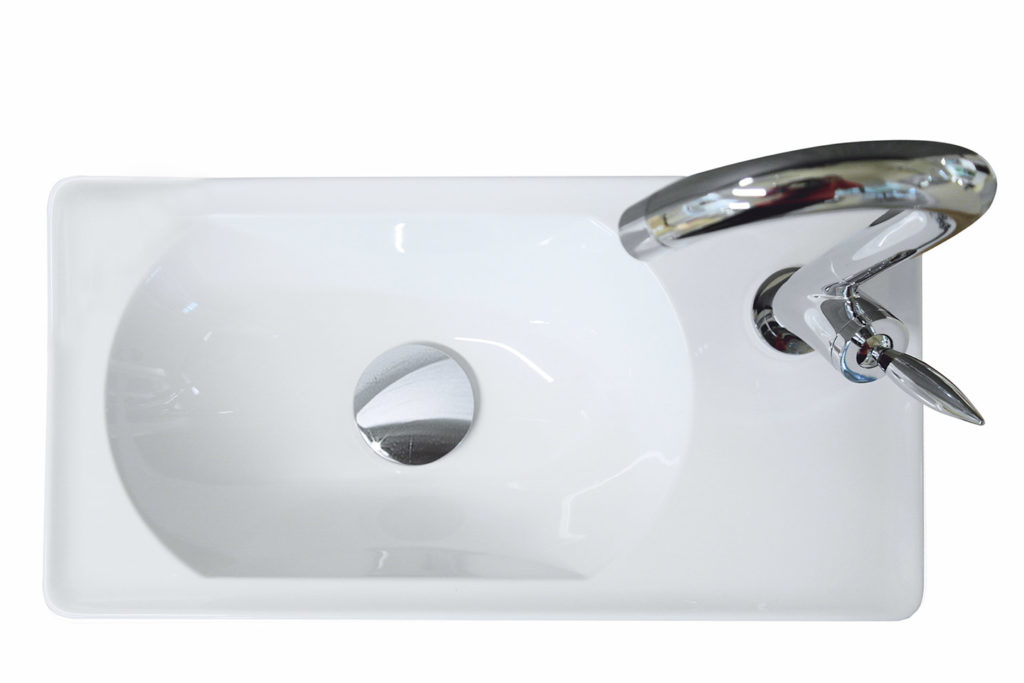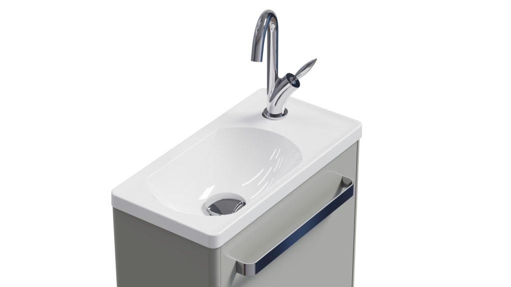 Jazz, die Designlösung für Toiletten ! Handwaschbecken auf Unterschrank mit grosszügig bemessenem Stauraum, grosser Griff, der als Handtuchhalter dienen kann.