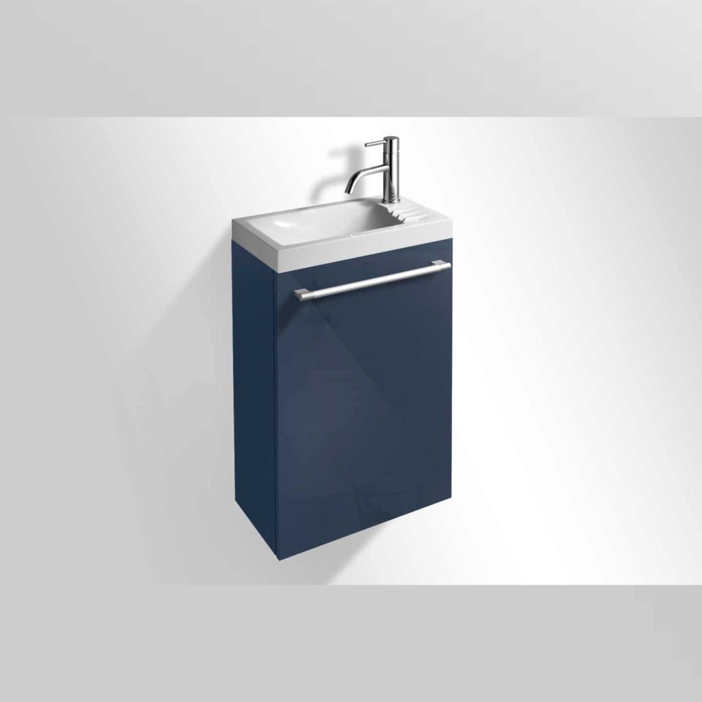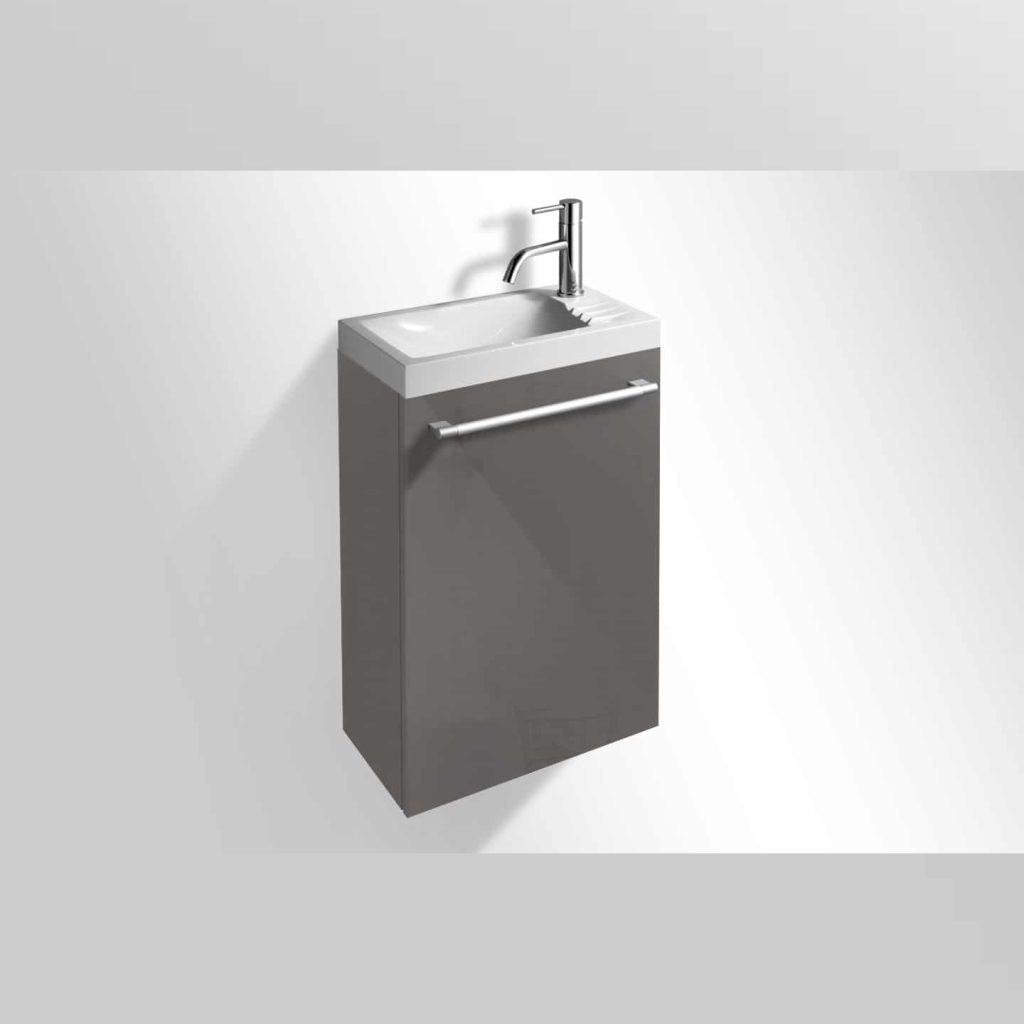 Mit oder ohne Seifenschale vereint das Handwaschbecken Sucre Komfort und Platzersparnis. Sein Waschbecken aus glänzendem weißem Céramyl® oder aus mattem Polar White Solid Surface steht im Kontrast zu den matten oder glänzenden Lackfarben der Möbel und dem Furnier aus blonder Eiche. Die Tür mit Rechts- oder Linksanschlag ist für Ihren höheren Komfort mit Schließdämpfern ausgestattet. Darin verbirgt sich ein Innenregal für die geschätzte optimierte Aufbewahrung. Der matt verchromte Griff dient als Handtuchhalter. Kombinieren Sie das Möbelstück mit dem passenden Regalspiegel aus Lack oder Holz und der Cadix Chrome-Mischbatterie für ein äußerst gelungenes Ensemble!